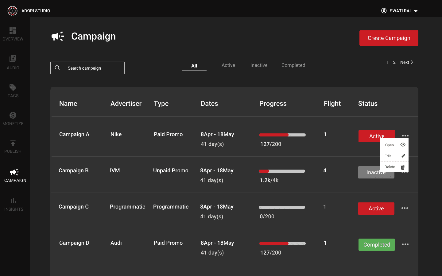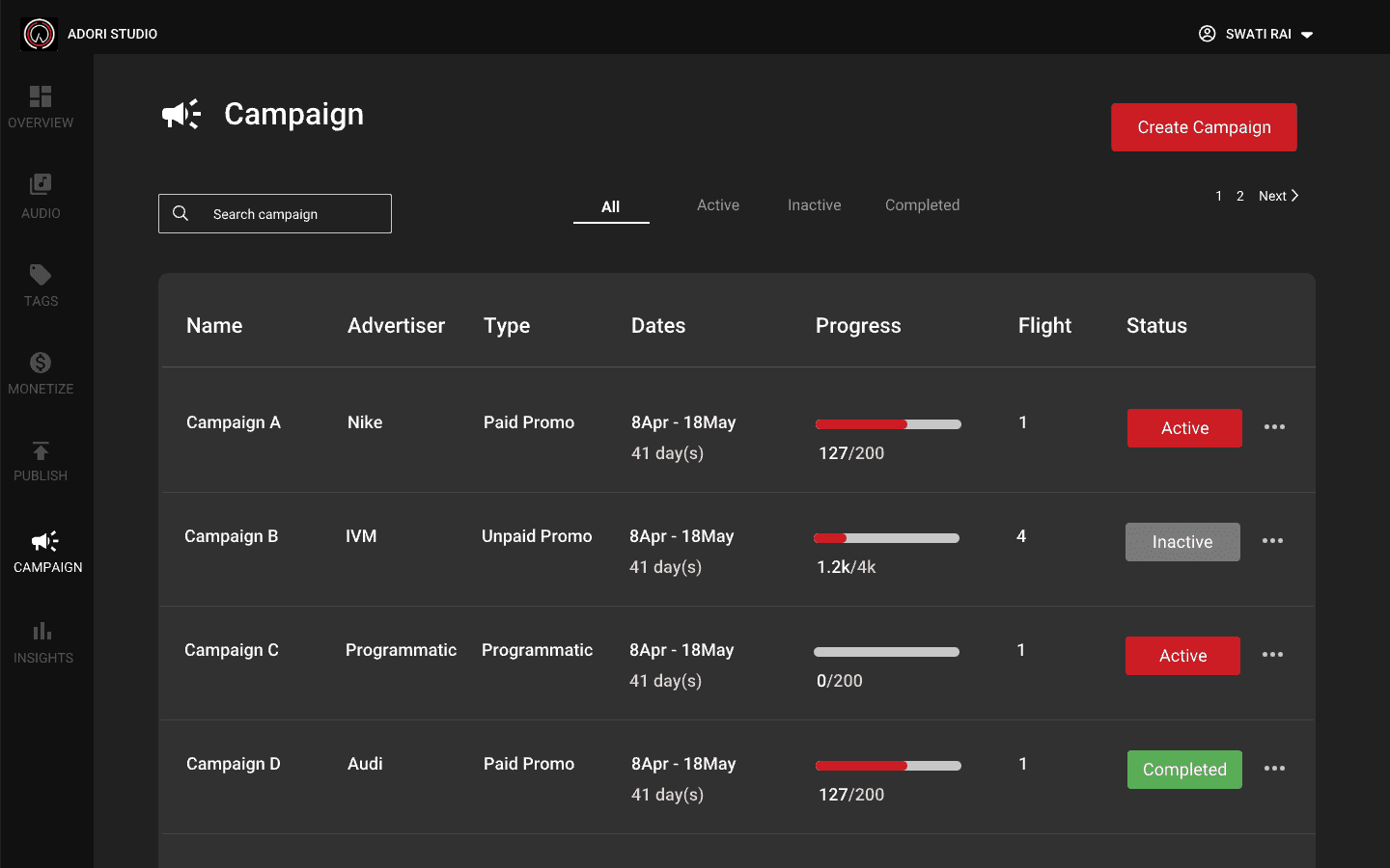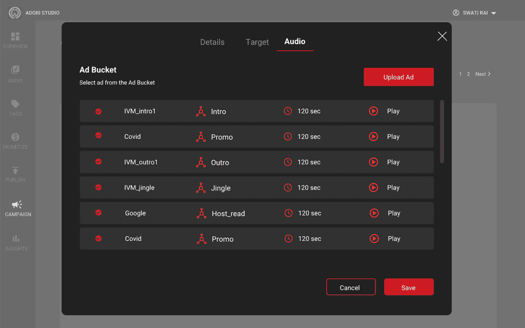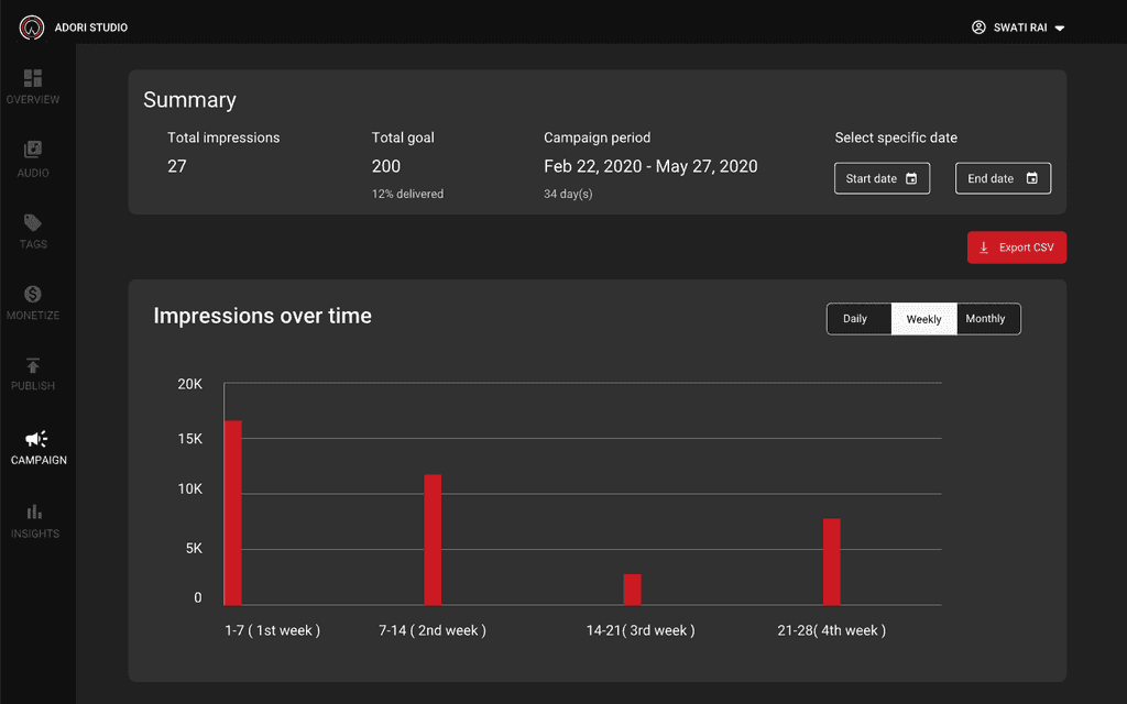 During my tenure as a User Experience Designer at Adori Labs, I took a leadership role in crafting the Ad Campaign Manager and Audio Ads platform. This role necessitated comprehensive research, mapping out user paths, and creating intuitive user-centric interfaces. My teamwork with the co-founder was flawless, enabling us to accomplish intricate tasks like launching campaigns, tracking impressions, and integrating ads. Modalities like adding video tagging capabilities and making the product compatible with Android Auto and CarPlay were core to my role as I aimed to improve the product. Consequently, I continually refined designs centered on user input to ascertain a smooth and efficacious user interaction.