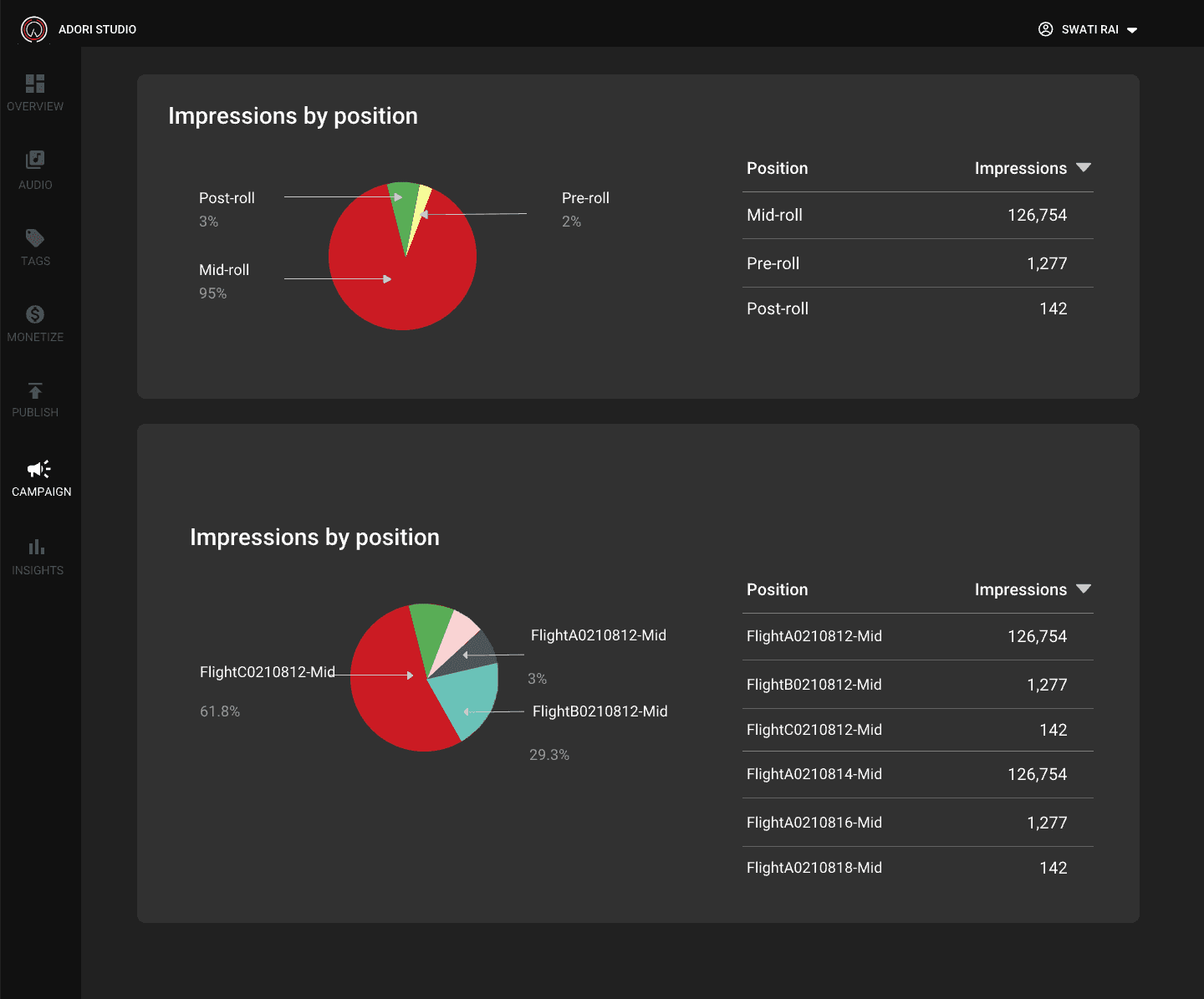 You can also get the impressions by shows just set the filter and you will get detailed analytics.